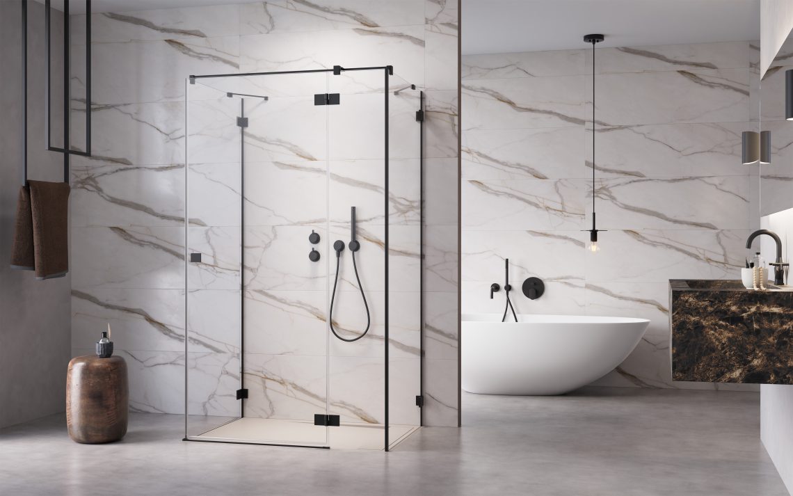 W ramach programu Radaway „Na Miarę” można zamówić czarne kabiny prysznicowe idealnie dopasowane do wymiarów i układu wnętrza.